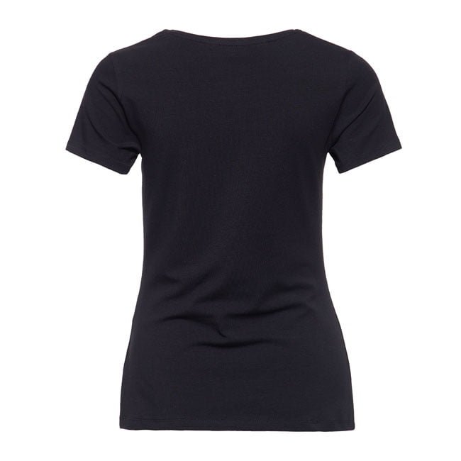 Camiseta mujer slim fit, confeccionada en 92% algodón y 8% elastano, con estampado frontal y escote redondo amplio.