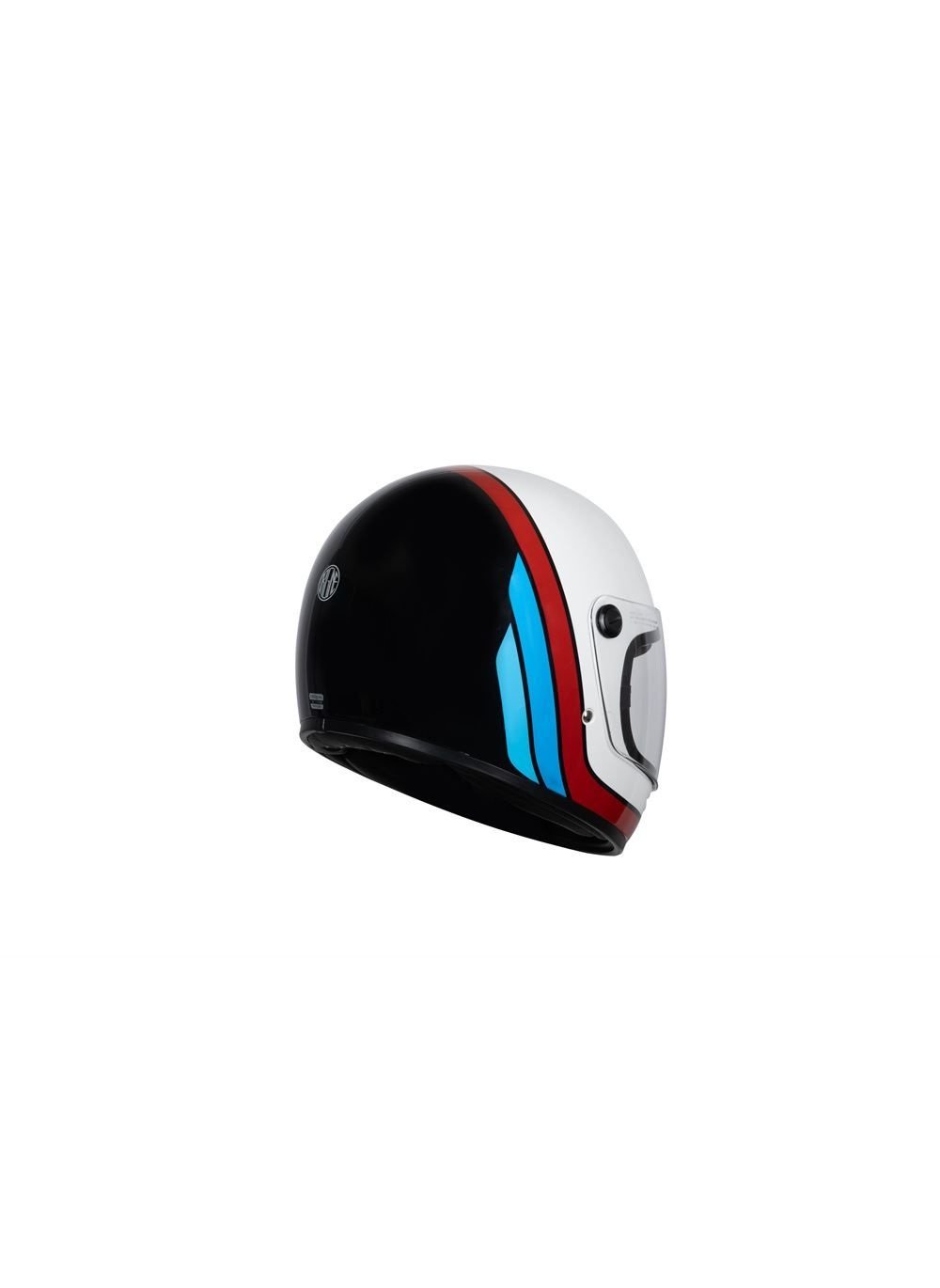 Casco de moto integral perfecto para todo amante de lo retro, se caracteriza por su calota de fibra de vidrio lo que lo hace muy cómodo de llevar. Su pantalla tiene tratamiento anti UV y anti rayas ademas de tener un bloqueo de pantalla para que no se pueda subir cuando lo estamos usando. Básicamente el compañero perfecto para nuestras largas rutas moteras.