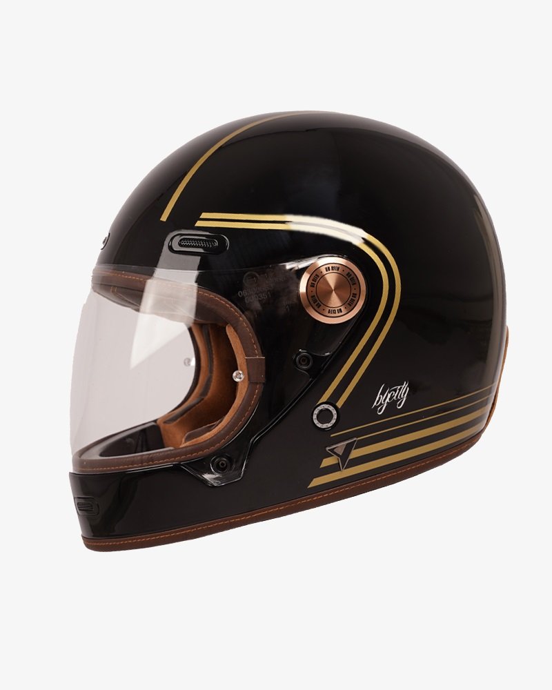 Casco Roadster III Gold Black integral de fibra de vidrio. Estilo y seguridad en conjunto. Nueva versión del Roadster II pero mejorada. Con cierre más seguro, nuevo interior y lamina antivaho incluida.