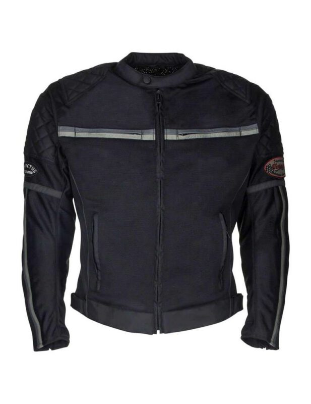 forro cuerpo fijo tejido de malla con 2 bolsillos con cremallera bolsillo, chaleco desmontable con gráfico café racer de termo-aluminio con bolsillo cartera y bolsillo GSM. Protección contra la lluvia mediante membrana impermeable y transpirable