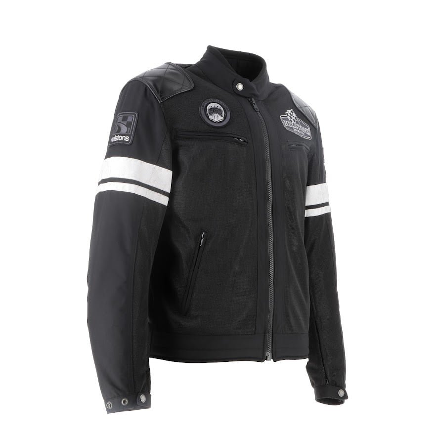 La Chaqueta Helstons Verano Revoltere Air es una prenda diseñada especialmente para hombres que buscan un estilo desenfadado y fresco durante los días de verano. Esta chaqueta cuenta con una construcción en color negro con una delantera y trasera perforada que garantiza una excelente ventilación para mantener al usuario fresco durante los días más calurosos.