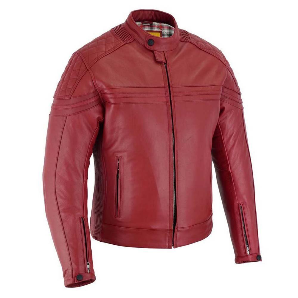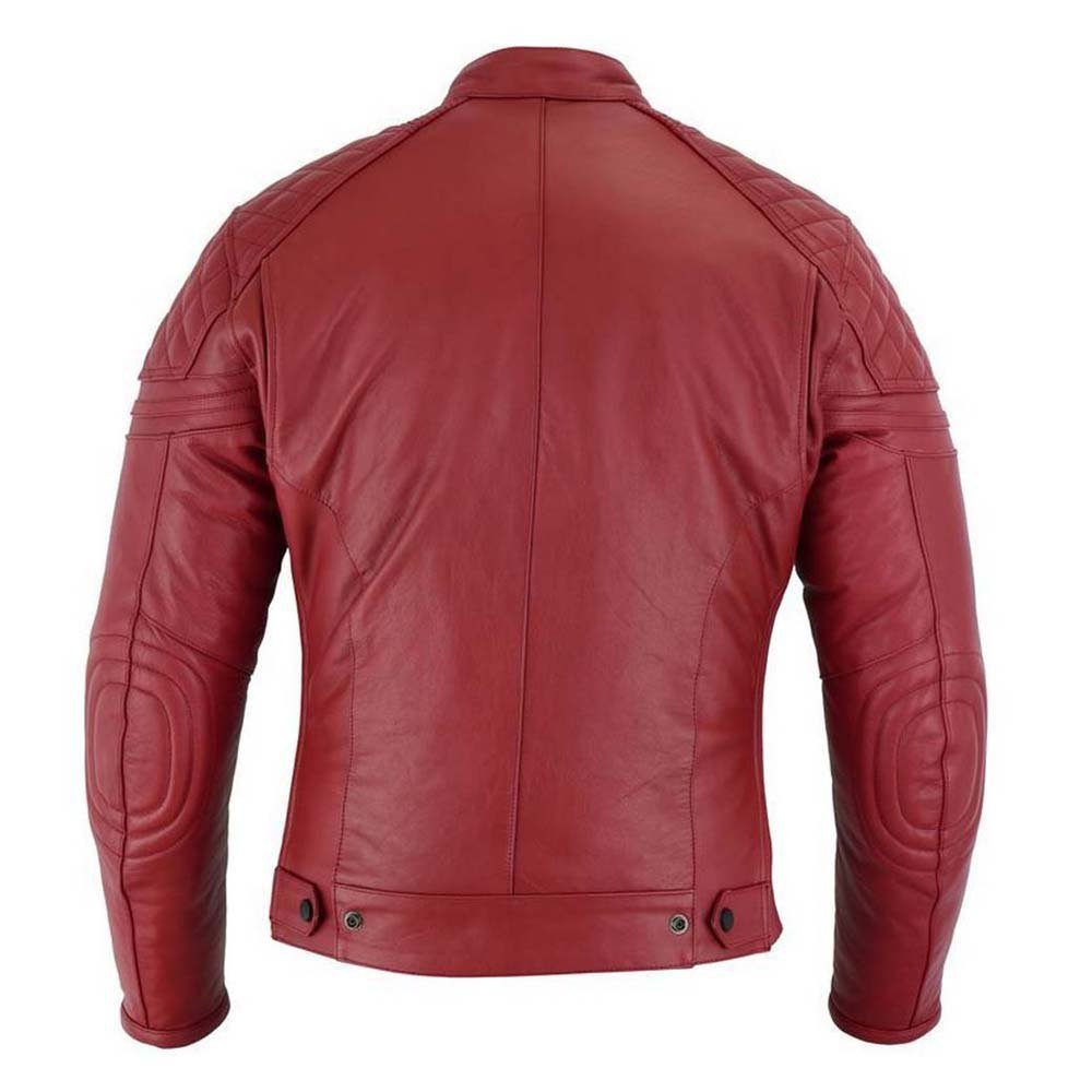Pon color a tu camino con la chaqueta de moto de cuero Invictus Eros. Una chaqueta de cuero en color rojo estilo café racer. Tiene forro incorporado (no desmontable) que es idóneo para los días en los que queramos coger la moto y el día sea más frío. El diseño de las coderas y de las hombreras le dan un toque retro. En los laterales es una composición de materiales elásticos para que la chaqueta se ajuste y amolde mejor a cada usuario, además, se puede ajustar a la cintura con corchetes.