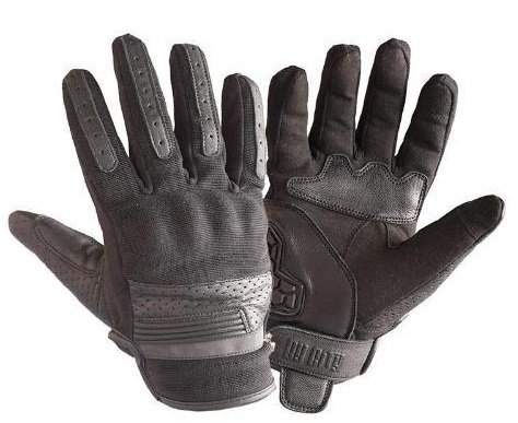 Guantes de piel y malla ventilada con protecciones Flexishock en nudillos y refuerzos antiabrasión en la palma. Función táctil en dedo índice y corazón, ajuste mediante velcro en muñeca.
