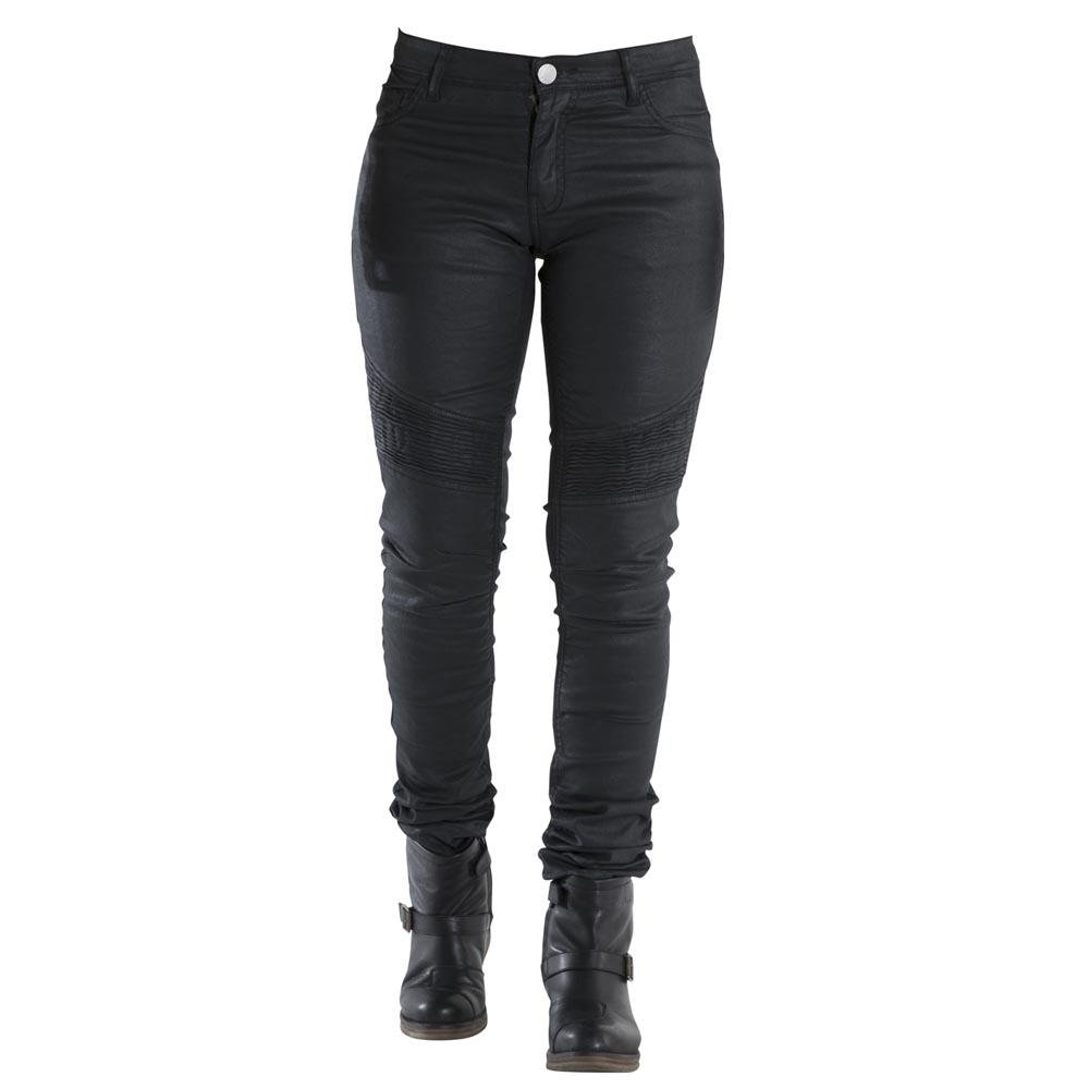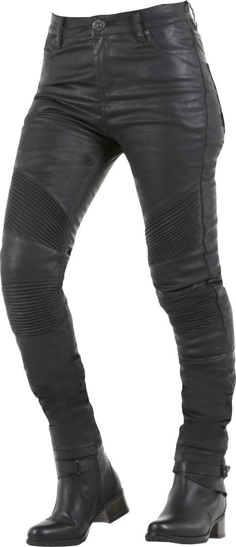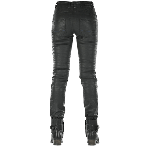 El jean para moto Imola, éxito de ventas de la gama de pantalones para mujer Overlap, este pantalón dispone de un corte slim y elástico, ajustado desde las caderas a los tobillos. Su estilo se realza con sus refuerzos cómodos por encima de las rodillas. Homologado CE y dispone de un forro reforzado en fibras de aramida y de protecciones para rodillas y caderas.